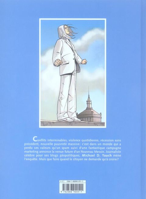 Conflits interminables, violence quotidienne, récession sans précédent, nouvelle pauvreté massive : c'est dans un monde qui a perdu ses valeurs qu'un spam suivi d'une fantastique campagne marketing annonce la venue future d'un Nouveau Messie. Journaliste célèbre pour ses blogs géopolitiques, Michael D. Yauch mène l'enquête. Mais que faire quand le citoyen ne demande qu'à croire oe