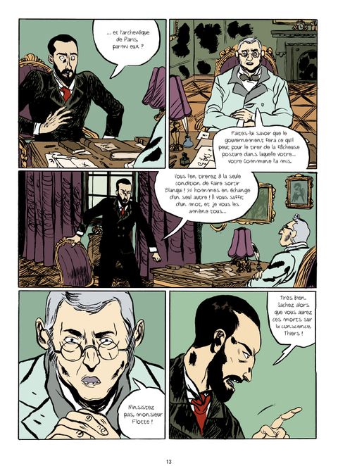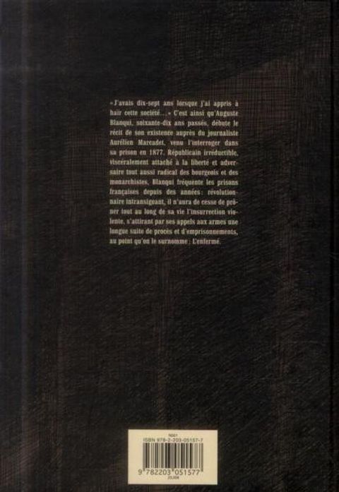 Par l’auteur de Faire le mur et España La Vida, une évocation fouillée de la vie d’Auguste Blanqui, figure du socialisme radical français au XIXe siècle. « J’avais 17 ans lorsque j’ai appris à haïr cette société… » Ainsi Auguste Blanqui, à soixante-dix ans passés, débute-t-il le récit de son existence à un journaliste, Aurélien Marcadet, venu l’interroger dans sa prison en 1877, en vue d’un article. Républicain irréductible, viscéralement attaché à la liberté et adversaire tout aussi radical des bourgeois et des monarchistes, Blanqui fréquente les prisons françaises depuis des années : révolutionnaire intransigeant, il n’a cessé de prôner tout au long de sa vie l’insurrection violente, s’attirant par ses appels aux armes une longue suite de procès et d’emprisonnements. Difficile et abrupt, l’échange entre l’ombrageux Blanqui et Marcadet permet, entre souvenirs et flash-back, de parcourir rétrospectivement les grandes étapes du parcours politique et personnel de cet éternel révolté, à qui sa longue captivité a valu de se voir surnommer « l’Enfermé » par une opinion publique de plus en plus réceptive à ses idées. Lui-même auteur engagé comme en témoignent ses précédents ouvrages chez Casterman, Maximilien Le Roy rend ici, à travers la fiction historique et avec le concours de Renart au dessin, un hommage appuyé à celui qui fut l’un des principaux inspirateurs de la Commune de Paris.