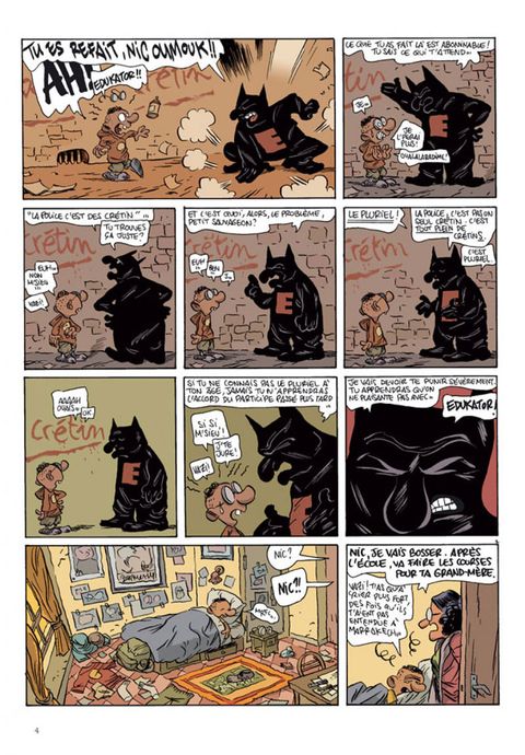 Nic Oumouk, jeune désoeuvré d'une banlieue riante vit avec ces copains une vie paisible, entrecoupée de quelques tentatives de racket, brimades et rap Hardcore. Bref, tout irait pour le mieux s'il n'y avait pas Edukator, le terrible justicier de l'orthographe qui terrorise les graffeurs et autres tageurs. Ceci est une terrible histoire de vengeance et de lutte pour retrouver sa dignité, qui donne à Larcenet l'occasion d'inventer la grande série d'humour et d'aventure du xxie siècle, le Tintin du 9-3. Après le Manu Larcenet intimiste du Combat Ordinaire, le faussement autobiographique du Retour à la Terre, voici la série d'aventures comiques. L'idée en est simple, raconter une vraie aventure classique avec des héros et des méchants mais avec un décalage absurde, l'effet Larcenet. La trame peut s'apparenter à un bon Spirou, Gil Jourdan ou la Ribambelle sauf qu'il s'agit d'un héros actuel sympathique et génialement pathétique et que l'action se situe dans la banlieue nord et que le rap et les tags sont partout. Attention cependant, il s'agit d'une vraie série tout public, destinée aux enfants de 10/12 ans comme aux adultes. Elle est simplement terriblement actuelle et vraiment épatante.