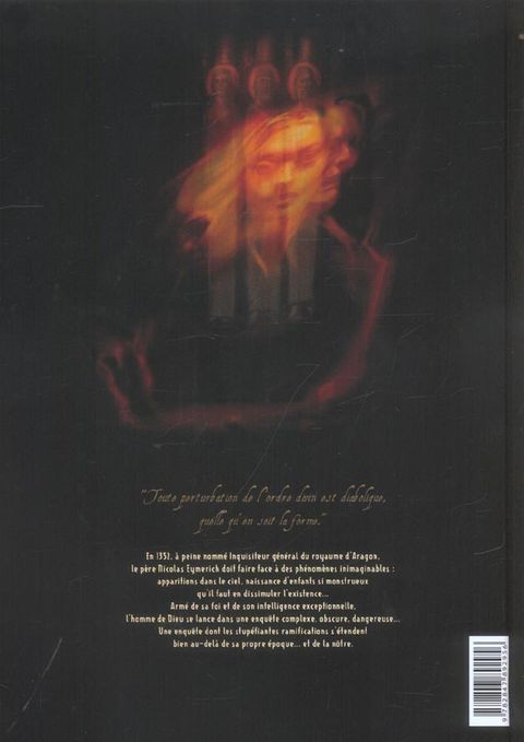 1352. L'inquisiteur général du royaume d'Aragon, Nicolas Eymerich, poursuit son enquête. L'image féminine qui est apparue plusieurs fois dans le ciel pourrait-elle être celle de Diane, la déesse antique ? Et quels sont les rapports entretenus par cette divinité et une expédition spatiale se déroulant en 2194 ? Une révélation stupéfiante attend l'inquisiteur et le lecteur ! Nicolas Eymerich, personnage historique, est devenu un héros de romans à succès. Il réussit son passage à la BD grâce à une somptueuse adaptation pleine de puissance et de mystère.