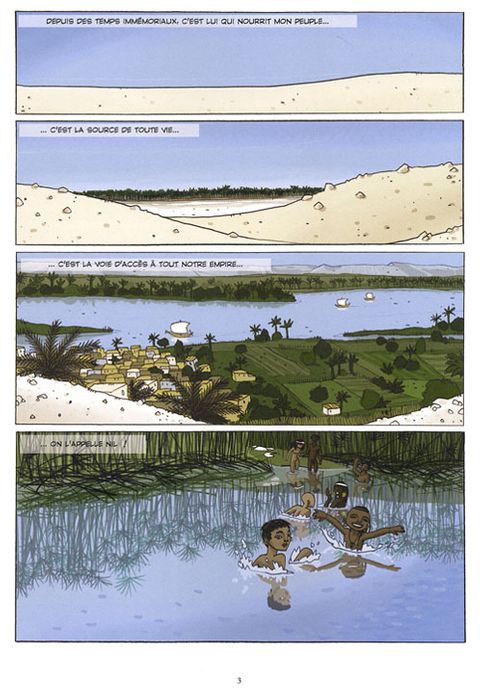 a l'époque des pharaons, dans une petite ville située au bord du nil, le fleuve-dieu, source de vie et d'échanges, une bande d'adolescents, menée par ahmôsis et rahotep, mène une vie tranquille et aborde avec les soucis des jeunes gens de leur âge la vie d'adulte. mais un jour, le père d'ahmôsis, un marchand en contact avec des commerçants venus de l'étranger, meurt dans de dramatiques et étranges circonstances... dès le lendemain, d'autres personnes périssent de la même manière. la population s'interroge : s'agit-il d'une épidémie, d'une série d'empoisonnements ? ahmôsis, contre, l'avis général, est persuadé que ces morts cachent quelque chose de beaucoup plus grave, quelque chose qui met en péril tout l'empire...