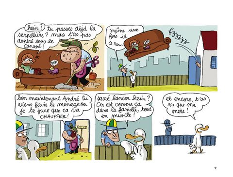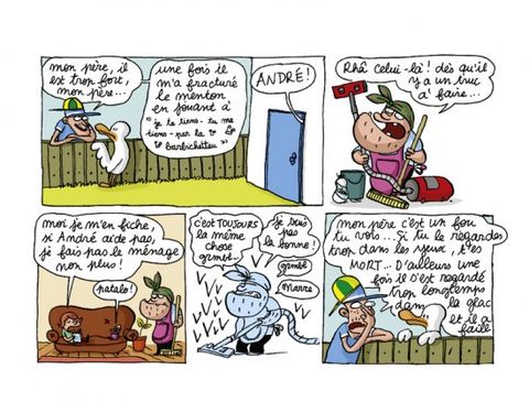 Nini est de retour. Elle ne s'est pas calmée. Tant mieux ! C'est toujours l'embrouille chez Nini Patalo ! Les mini-pingouins se mettent au bio et bloquent la porte du frigo à tout ce qui ne l'est pas. Jean-Pierre l'homme préhistorique se tape pour sa part le ménage en râlant, pendant qu'André le canard tchatche pépère avec le voisin. Quant à Fritoune la patate géante elle est de retour à la maison après une escapade au potager. Mais pas toute seule, puisqu'elle donne aussitôt naissance à une ratatouille de charmants bambins : un poireau, un navet et un brocoli... « L'a pas dû s'ennuyer, au Potager ! » comme dirait Jean-Pierre... Toujours aussi frais et décalé,le nouveau Patalo - dans un nouveau format à l'italienne ! - c'est un grand bol d'air et d'humour, expiré avec grâce et talent par une Lisa Mandel toujours aussi inattendue...
