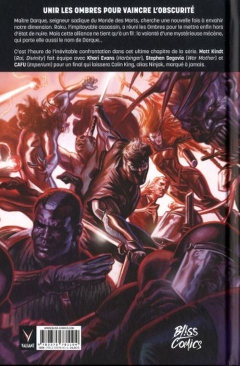 La série touche à sa fin avec un double tome. En effet, au lieu de proposer un tome 6, Bliss a préféré regrouper les derniers chapitres dans un cinquième tome particulièrement fourni. Ce tome nous propose deux histoires totalement indépendantes l’une de l’autre. La première nous présente Ninjak victime d'un parasite (...) Voir le commentaire