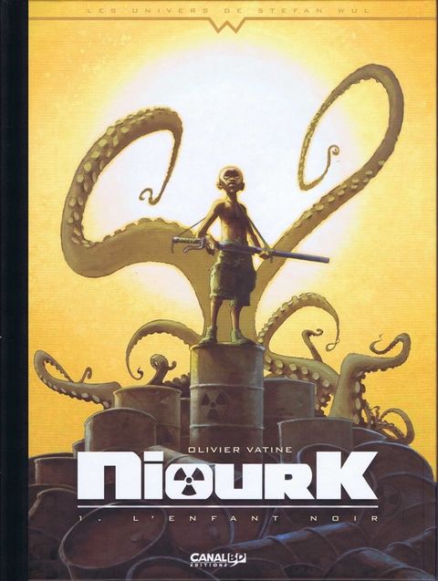 Sur une Terre post-apocalyptique où l'Humanité a régressé au stade primitif après une catastrophe nucléaire ayant asséché les océans et donné naissance à des chimères mutantes, quelques tribus survivent à l'état sauvage. Parmi elles, la horde de Thoz, où vit l'enfant noir, rejeté par les siens. Lorsque le vieux sorcier de la tribu le condamne à mort, l'enfant noir se met en marche pour Niourk, la ville des dieux, où ne subsistent que ruines et étranges mécanismes, vestiges de la civilisation du XXe siècle. Poulpes mutants, mégalopole fantôme et androïdes vénusiens : redécouvrez le plus grand succès de l'auteur culte Stefan Wul, un classique de la science-fiction remis à neuf par un maître du genre : Olivier Vatine.