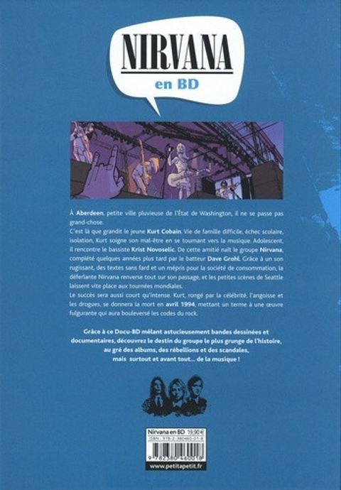 La vie, le succès et les dérives du plus grand un groupe de rock alternatif américain racontés en Docu-BD. Une vraie biographie illustrée et documentée pour tout savoir sur Kurt Kobain, Krist Novoselic et Dave Grohl, icônes Grunge de toute une génération.