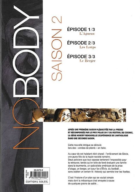 Très bonne 2e saison de Nobody : l'Italie des années de plomb, relents de fascisme, extrême gauche, kidnappings, foot...des flics, un juge, une journaliste... Tous les ingrédients d'un bon polar dans une ambiance graphique parfaitement adaptée au genre. Seul hic, mais en est-ce un, il n'y a rien aucun lien entre (...) Voir le commentaire