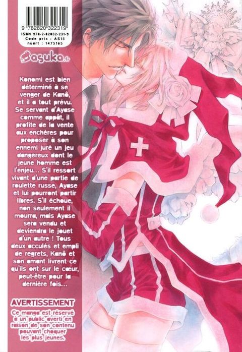 Konomi est bien de´termine´ a` se venger de Kano^, et il a tout pre´vu. Se servant d'Ayase comme appa^t, il profite de la vente aux enche`res pour proposer a` son ennemi jure´ un de´fi : s'il ressort vivant d'une partie de roulette russe, Ayase et lui pourront partir libres. Mais s'il e´choue, non seulement il mourra, mais Ayase sera vendu et deviendra le jouet d'un autre... Accule´ et repensant a` tout ce qu'il n'a pas eu le temps de dire a` son geo^lier, Ayase tente tant bien que mal de le forcer a` l'abandonner pour le sauver...