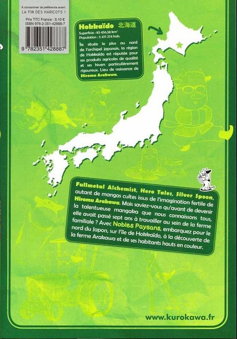 Fullmetal Alchemist, Hero Tales, Silver Spoon, autant de mangas cultes issus de l'imagination fertile de Hiromu Arakawa. Mais saviez-vous qu'avant de devenir la talentueuse mangaka que nous connaissons tous, elle avait passé sept ans à travailler au sein de la ferme familiale ? Avec Nobles Paysans, embarquez pour le nord du Japon, sur l'île de Hokkaïdo, à la découverte de la ferme Arakawa et de ses habitants hauts en couleur.