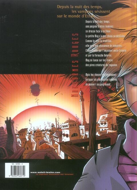 La petite May n'a pas choisi sa destinée : comme le veut la tradition, elle sera chasseuse de vampires ! Chaperonnée par son oncle Granite et la farouche Dolorès, elle se lance sur les traces des pires créatures du royaume. Mais tout se complique lorsque les hautes sphères du pouvoir se gangrènent... Après leur fuite de la Guilde, May et Dolorès perdent la trace de Granite... Les Golems des Seiitis ont-ils eu raison de lui ? De son côté, Aghiis, qui a dévoilé son vrai visage, s'apprête à conquérir le royaume. L'ombre menaçante du Tonnerre Pourpre plane sur la cité de Gadës...