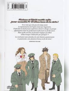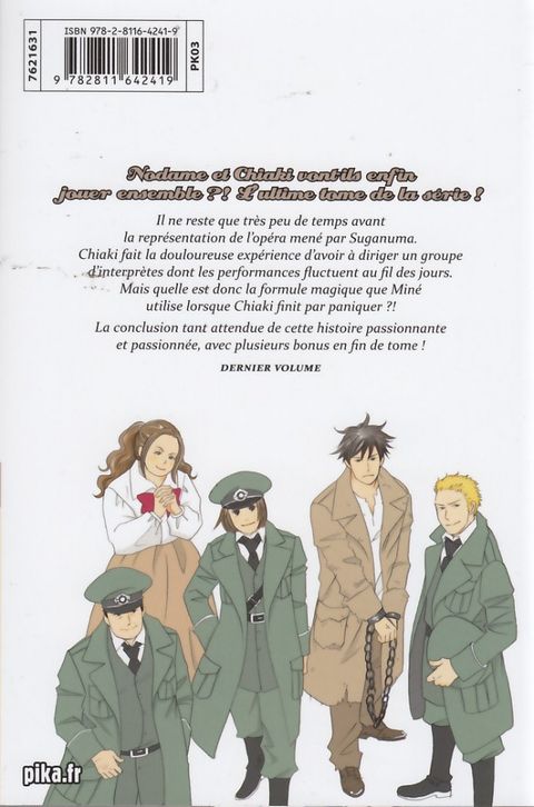 Nodame et Chiaki vont-ils enfin jouer ensemble ?! L'ultime tome de la série ! Il ne reste que très peu de temps avant la représentation de l'opéra mené par Suganuma. Chiaki fait la douloureuse expérience d'avoir à diriger un groupe d'interprètes dont les performances changent de jour en jour et qui ont du mal à trouver l'accord parfait. Mais quelle est donc la formule magique que Miné utilise lorsque Chiaki finit par paniquer ?! La conclusion tant attendue de cette histoire passionnante et passionnée, avec plusieurs bonus en fin de tome !