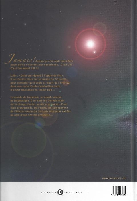 Un homme se réveille dans un univers inconnu de lui : Le monde du Troisième. Son problème est simple, il est en train de mourir d'auto-combustion lente. Cela lui procure une soif inextinguible et boire ne résout rien. La seule solution pour s'en sortir est de résoudre l'énigme que lui proposent les Connaissants chez qui il a trouvé refuge : «Trouve la ria vae et fais souffler le feu de l'air». Mais de l'autre coté de la frontière, les Compagnons de l'Obscur sont là qui veulent le récupérer à tout prix car il est précieux ! Pourquoi ?