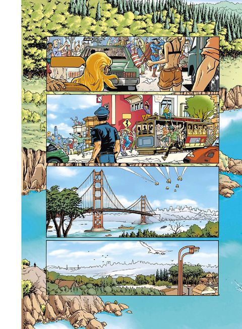 Grâce aux informations recueillies au Brésil par le Nomad, les Etats-Unis viennent de remporter la guerre qui les opposait aux nations d'Amérique de Sud. Hélas, lors des festivités de victoire, un énorme tremblement de terre frappe la Californie de plein fouet. C'est donc dans des paysages ravagés qu'Arrouan parcourt l'ouest du pays en quête de ses entités perdues lancées à la recherche d'une quatrième qu'elles n'ont jamais rencontrée. Pour passer sans encombre les barrages de l'armée, il va se joindre à une bande de prisonniers mexicains en fuite qui l'escorteront jusqu'à San Francisco. Dans cette ville en ruine, ils vont tenter de trouver la maison du milliardaire qui est censé détenir la dernière des entités afin de l'enlever. Ayant réussi à échapper à la cour martiale, Grenston Phillips, père adoptif d'Arrouan, est lancé sur la même piste, le long de la route 66. Si les retrouvailles entre ces deux êtres que tout sépare sauf l'amour semblent désormais irrémédiables, elles ne se feront ni sans mal, ni sans surprise. Cet épisode marque la fin de la série "Nomad" qui, en 5 albums de 136 pages, narre les errances mouvementées d'un jeune homme au pouvoir incommensurable, capable de lire l'histoire de l'univers sans un simple petit caillou. Condamné jusqu'alors à fuir tout autour du globe des groupuscules voulant utiliser ses capacités mentales, il a cette fois décidé de se prendre en main et de foncer devant lui pour enfin résoudre les problèmes qui l'empêchent d'atteindre son rêve : vivre enfin comme tout le monde...