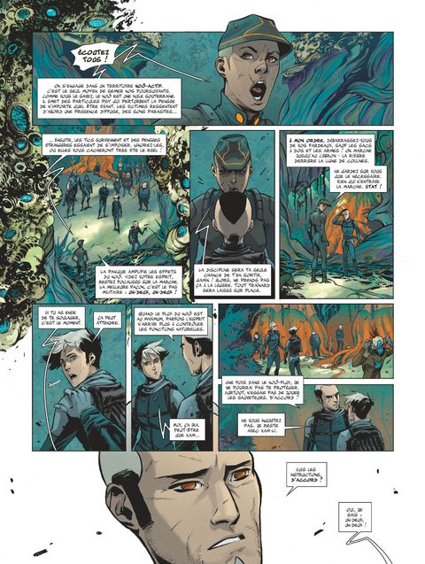 Pour organiser la révolte, il faudra d'abord s'enfuir. Dans sa chute, un gouvernement se laisse aller à la panique et trop souvent, sa folie ne trouve de repos que dans un dernier mouvement aveugle et atroce. Brice, Hag, Xam, Jouve et le groupe de rebelles dont ils font partis sont en fuite. Mais le danger est partout, et l'unique solution pour échapper aux griffes gouvernementales est de traverser une zone Noô-active où ils subiront les affres provoquées par cette étrange substance sous-terraine. Les particules du Noô déclenchent, quand on les approche, de terribles hallucinations contres lesquelles un esprit chétif ne peut que périr. Cette épreuve n'est pourtant que la première étape du combat pour la libération des peuples de Soror. Deuxième tome frénétique, l'échappée fantastique de Brice et ses compagnons les emmèneront sur les routes sauvages d'une planète extraterrestre toujours sublimement illustrée par Alexis Sentenac. Dans un juste équilibre entre action survoltée et dialogues inventifs, Laurent Genefort continue de mettre en place l'univers fascinant de Stefan Wul, complexe et sans moral, où rien n'est moins dangereux que de trop s'attacher aux personnages.