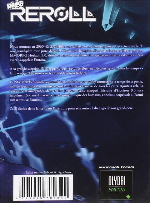 L’histoire de NOOB REROLL commence en 2060. On suit l’aventure de Zack Middle, un adolescent en deuil qui repense à la vie incroyable de son grand-père, tout juste décédé. Ce dernier était un champion d’e-sport devenu célèbre grâce au MMORPG Horizon 9.0, dont les serveurs ont fermé il y a 31 ans. Son avatar s’appelait Fantöm… À sa grande surprise, Zack apprend que le plus célèbre jeu vidéo en ligne de tous les temps va faire son grand retour sous le nom d’Horizon Reborn. Ce MMORPG futuriste va numériser l’esprit de ceux qui s’y connectent le temps de la partie, afin de leur proposer un univers aussi réaliste que leur vie de tous les jours. Ajouté à cela, la conscience sauvegardée de certains joueurs ayant marqué l’histoire d’Horizon 9.0 sera implémentée dans des PNJ aussi complexes que des humains, appelés « perpétuels ». Parmi eux se trouve Fantöm. Zack décide de se lancer dans l’aventure pour rencontrer l’alter ego de son grand-père.