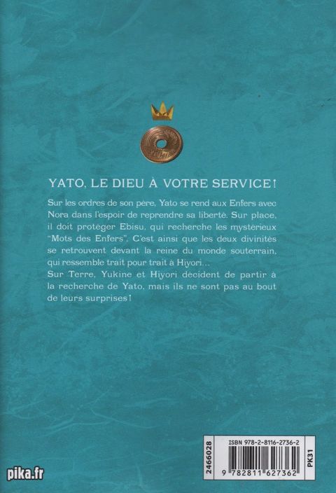 Sur les ordres de son père, Yato se rend aux Enfers avec Nora dans l'espoir de reprendre sa liberté. Sur place, il doit protéger Ebisu, qui recherche les mystérieux "Mots des Enfers". C'est ainsi que les deux divinités se retrouvent devant la reine du monde souterrain, qui ressemble trait pour trait à Hiyori... Sur Terre, Yukine et Hiyori décident de partir à la recherche de Yato, mais ils ne sont pas au bout de leurs surprises !
