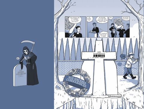 Les plus belles perles des enterrements illustrées !" Pour un auteur, voir son univers renaître à travers les yeux de quelqu'un d'autre est particulièrement étonnant. Savoir raconter une histoire sans la trahir, s'approprier un univers et y mettre sa patte, c'est un vrai talent. Huit ans après la parution de Mes sincères condoléances, j'ai l'impression à la fois de revivre et de redécouvrir ses histoires. Ceci grâce au talent de Sam. Sans avoir, à ma connaissance, travaillé un seul jour aux pompes funèbres, il a su retranscrire chacune d'elle. À l'occasion de ces quelques mots, je voudrais avoir une pensée pour ses proches. Imaginez ce qu'ils ont ou se dire : " Je m'inquiète pour Sam, des derniers temps il s'intéresse à des trucs bizarres. Tout à l'heure je l'ai trouvé en train de feuilleter un catalogue de corbillards". Une chose est sûre : Sam a gagné sa tasse à café (l'équivalent du rond de serviette) aux pompes funèbres. C'est un honneur dont peu peuvent s'enorgueillir. Redécouvrez les moments culte des enterrements ! L’enterrement est un moment fort, solennel et unique mais il peut aussi devenir un moment culte ! Les cérémonies sont souvent le théâtre d’événements étonnants, drôles et extravagants ! Des anecdotes réelles illustrées tout en poésie par Samuel Rimbault dans ce roman graphique qui vous promet de passer du rire aux larmes !