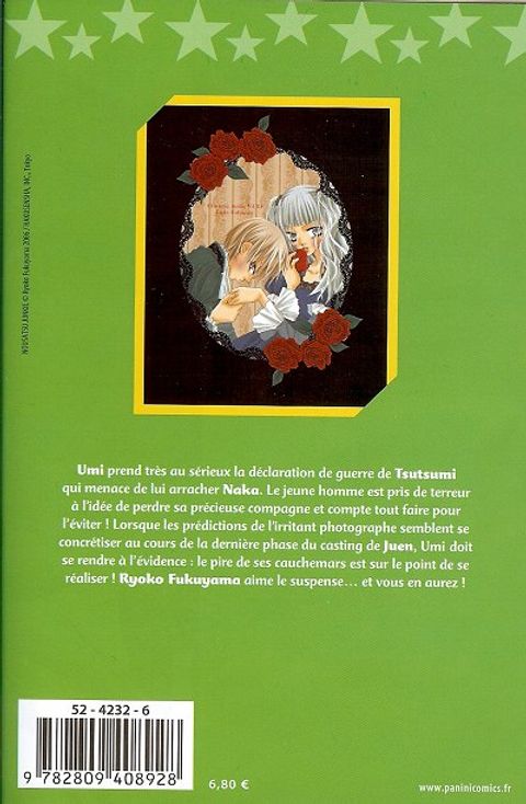 Umi prend très au sérieux la déclaration de guerre de Tsutsumi qui menace de lui arracher Naka. Le jeune homme est pris de terreur à l'idée de perdre sa précieuse compagne et compte tout faire pour l'éviter ! Lorsque les prédictions de l'irritant photographe semblent se concrétiser au cours de la dernière phase du casting de Juen, Umi doit se rendre à l'évidence : le pire de ses cauchemars est sur le point de se réaliser ! Ryoko Fukuyama aime le suspense... et vous en aurez !