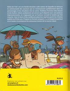 Notes de Trail est une bande dessinée culte autour de laquelle se retrouve la communauté des coureurs qui se reconnaissent parfaitement dans les personnages et les situations mis en scène. Matthieu Forichon (Des bosses et des bulles) côtoie assidument cet univers qu'il dépeint avec une justesse impressionnante, en s'appuyant sur un humour corrosif et tendre qui fait mouche. Voici le best of des meilleures planches reprises parmi les 4 tomes publiés au fil des ans. Proposé en format compact, il accompagnera partout et en toutes circonstances les amoureux transis de la course à pied.
