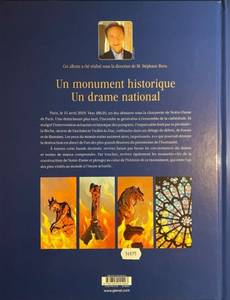 Un monument historique. Un drame national.Paris, le 15 avril 2019. Vers 18h20, un feu démarre sous la charpente de Notre-Dame de Paris. Une demi-heure plus tard, l'incendie se généralise à l'ensemble de la cathédrale. Et malgré l'intervention acharnée et héroïque des pompiers, l'impensable finit par se produire : la flèche, oeuvre de l'architecte Viollet-le-Duc, s'effondre dans un déluge de débris, de fumée et de flammes. Les yeux du monde entier assistent alors, impuissant, à ce qui pourrait devenir la destruction en direct de l'un des plus grands fleurons du patrimoine de l'humanité.À travers cette bande dessinée, revivez heure par heure les circonstances du drame et tentez de mieux comprendre. Par touches, revivez également les moments-clés de la construction de Notre-Dame et plongez au coeur de l'histoire de ce monument, qui reste l'un des plus visités au monde à l'heure actuelle.Réalisé en soutien de la fondation Notre-Dame (à qui sera reversé 1Euros pour chaque album vendu), cette bande dessinée bénéficie de la caution historique de Stéphane Bern, co-rédacteur d'un dossier pédagogique de 8 pages en fin d'album.