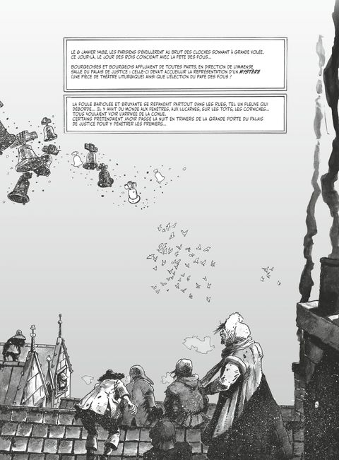 Un monument de la littérature pour un roman graphique cathédrale.On savait Victor Hugo humaniste ; en relisant Notre-Dame de Paris, on le découvre punk ! Contestataire, drôle et anarchisant ! Non seulement cette épopée nous précipite de la hauteur de cinq siècles, en plein cœur du Paris médiéval, dans une Société brutale et obscurantiste où règnent bûcher, superstitions et haine de l’hérétique, mais dans ce décor fascinant, Hugo nous offre un récit d’une saisissante modernité. Au centre de ce drame, une jeune fille, Esmeralda, ses prédateurs et la cathédrale Notre-Dame comme axe, édifice totémique autour duquel gravitent tous les protagonistes et se tisse le sourd complot des ténèbres.Après les succès de Dracula puis de Frankenstein, Georges Bess nous revient avec le plus emblématique des écrivains français. Il s’associe au souffle hugolien pour nous livrer une magnifique fresque historique, épique et romanesque qui rend hommage à la richesse de l’œuvre originelle. Bess se saisit ici du mythe comme personne ne l’avait fait auparavant avec son imposante maestria graphique et un noir & blanc aussi ensorcelant que le regard d'Esmeralda. C’est un tour de force à grand spectacle, intense et fastueux, peuplé de personnages légendaires !