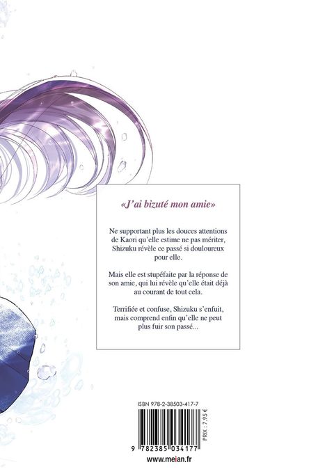 " J'ai bizuté mon amie "Ne supportant plus les douces attentions de Kaori qu'elle estime ne pas mériter, Shizuku révèle ce passé si douloureux pour elle.Mais elle est stupéfaite par la réponse de son amie, qui lui révèle qu'elle était déjà au courant de tout cela.Terrifiée et confuse, Shizuku s'enfuit, mais comprend enfin qu'elle ne peut plus fuir son passé...