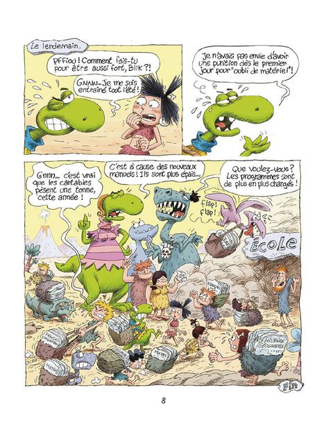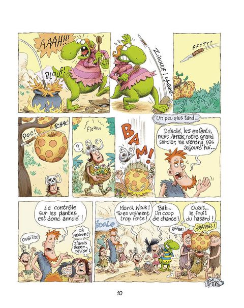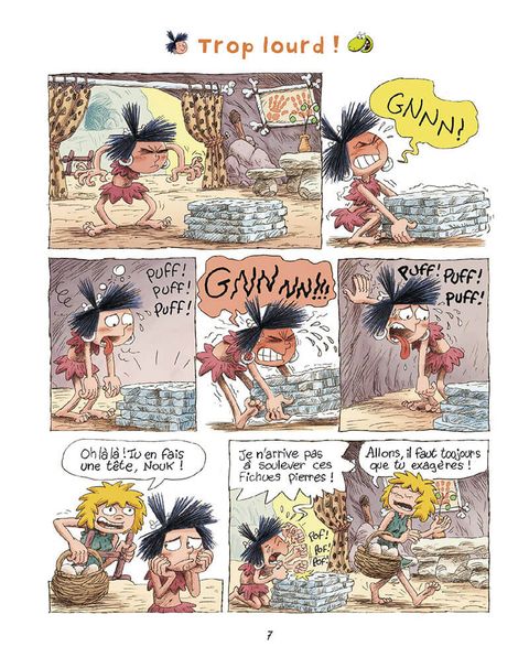 La petite Nouk mène une vie formidable. Avec son meilleur ami Blik, un petit dinosaure qui l'accompagne comme son ombre, elle explore les environs de son village. Rien ne lui fait peur... et c'est bien le problème ! Ni les terribles Bom-Bom, réputés grands amateurs de dinos bouillis, ni les méduses des sables, ni les scorpions géants... Mais les parents de Nouk, Toumak le costaud et la belle Souka, ne s'inquiètent pas tellement. Les mille dangers qui les entourent font partie de la vie de tous les jours, non ?... Et de toute façon, Nouk et son copain Dino sont amis avec Eddy le T-Rex, même si son intelligence n'est pas (du tout) proportionnelle à sa taille ! Pas de raison de s'inquiéter... Derrière Nouk et Blik, plongez dans un ébouriffant tourbillon de vie dans un cadre préhistorique qui ne cherche surtout pas l'exactitude documentaire ! Pure lecture de détente à l'humour accessible aux petits comme aux plus grands, les aventures de Nouk et Blik oscillent entre aventures débridées et récits décalés de la vie quotidienne de petits hommes des caverne. Tendresse, surprises et rires garantis !