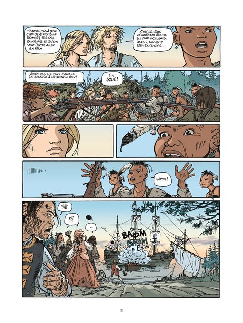 Une femme de tête dans un Nouveau Monde rude. L'indomptable Emie a pris la tête d'un groupe de survivants au naufrage du Bristol, navire qui traversait l'océan pour le Nouveau Monde. Elle a enfin réussi à récupérer ses enfants réfugiés dans une tribu indienne. Mais la troupe de fugitifs doit à nouveau s'échapper à l'arrivée du capitaine Elgrave, bien décidé à se venger : cap sur un village caché, loin des conflits, où chacun pourra oublier son histoire passée. Mais les secrets que chacun porte comme un boulet sur le chemin de la rédemption seront-ils plus forts que leur élan vers la liberté ? Voici déjà le deuxième volet de cette histoire en trois tomes. Ce groupe de colons pas comme les autres continue à tracer péniblement son chemin vers la liberté, à coup d'épées et de tirs de mousquet. Gilles Mezzomo dévoile petit à petit les mystères autour de ses personnages, accompagné par le dessin de Filippi, tout en dynamisme.