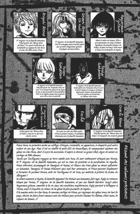 Petit-fils d’un yokaï, Nura Rikuo a en lui un quart de sang yokaï, ce qui lui permet un jour, alors qu’il est âgé de huit seulement, de se transformer et d’obliger les yokaïs à le suivre pour sauver ses camarades. Cependant, sa transformation n’est que temporaire et au réveil, il ne se souvient de rien. Et même si au départ il était fasciné par ces monstres et rêvait d’égaler un jour son grand-père, Nurarihyon, commandant des yokaï, il refusera par la suite de devenir comme eux.Cependant, les monstres forment immédiatement des clans et se disputent pour savoir s’il peut être leur chef. Certains le considèrent même déjà comme tel et l’appellent « maître ». Nura finira-t-il par accepter sa nature de yokaï ? ou continuera-t-il à fuir cette réalité ?