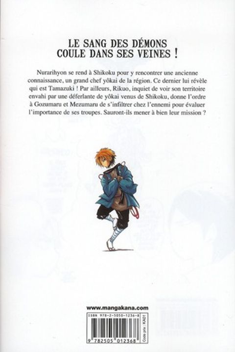 Nurarihyon se rend à Shikoku pour y rencontrer une ancienne connaissance. un grand chef yôkai de la région. Ce dernier lui révèle qui est Tamazuki ! Par ailleurs. Rikuo, inquiet de voir son territoire envahi par une déferlante de yôkai venus de Shikoku, donne l'ordre à Gozumaru et Mezumaru de s'infiltrer chez l'ennemi pour évaluer l'importance de ses troupes. Sauront-ils mener à bien leur mission ''