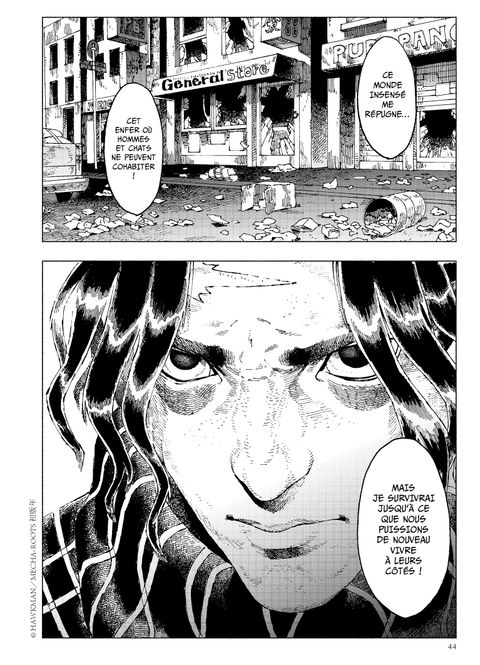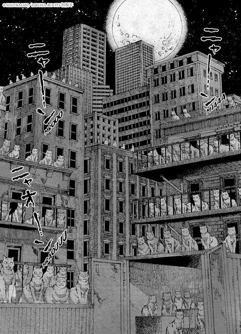 «<em> L'humanité ne peut plus se permettre d'éprouver de l'affection pour les chats ! </em>»Un terrible et mystérieux virus sévit et transforme peu à peu les derniers humains en boules de poils. Les quelques survivants se terrent pour échapper aux câlins de ces créatures effroyables... Parmi eux, Kunagi voit ses compagnons se métamorphoser au fur et à mesure, et tente de survivre à cette apocalypse féline. Mais son handicap n'est pas des moindres... Il adore les chats !À travers <em>Nyaight of the Living Cat</em>, découvrez un manga de survie qui revisite avec humour la thématique du zombie. Les nombreuses références cinématographiques distillées par Hawkman sont sublimées par le trait texturé de Mecha-roots !