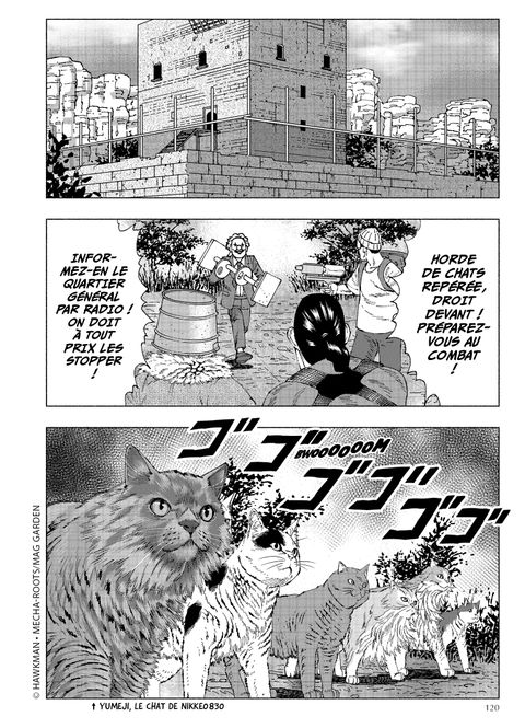 « L'humanité ne peut plus se permettre d'éprouver de l'affection pour les chats ! »Envoyés en mission par Grandma pour sauver le père et les fils Ward, Kunagi, Kaoru et Arata arrivent au centre commercial où la famille s'est rendue. Dans ce lieu infesté de félins, où rôdent des matous particulièrement coriaces et aux capacités étonnantes, la petite équipe aura fort à faire pour secourir les deux frères pris au piège... Mais peut-être pourra-t-elle compter sur une aide inattendue ?À travers Nyaight of the Living Cat, découvrez un manga de survie qui revisite avec humour la thématique du zombie. Les nombreuses références cinématographiques distillées par Hawkman sont sublimées par le trait texturé de Mecha-roots !« Ce titre revisite avec humour la thématique du zombie. » Presse Océan« Une délirante parodie des films de zombies comme La Nuit des morts-vivants. » bfmtv« Reprenant - en les détournant habillement - les codes des films de zombies, ce manga de Mecha-roots est très drôle ! » Picsou Magazine« Le lecteur s'amusera de situations absurdes et de dessins pas sortis d'une litière. »Geek Magazine