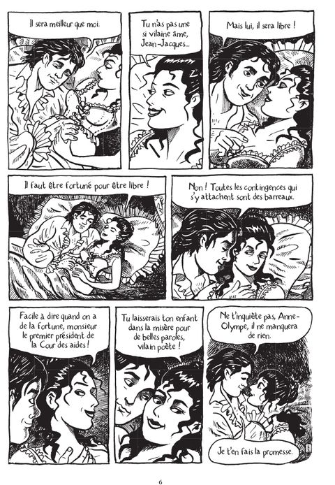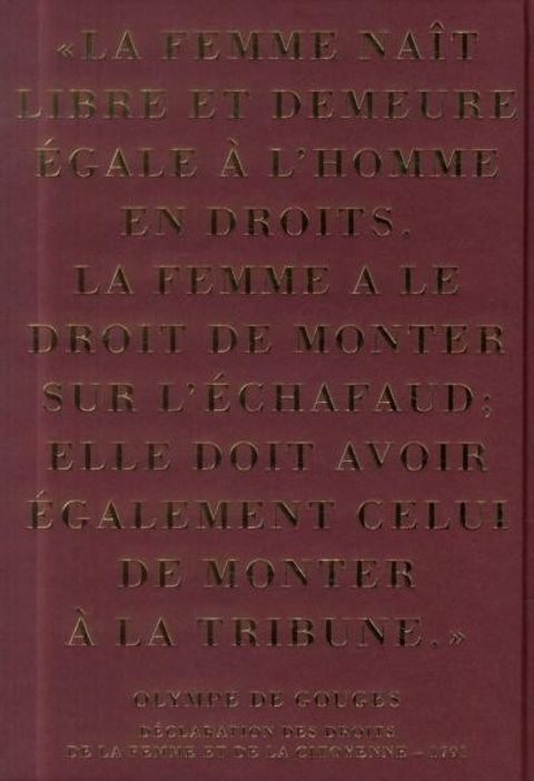 La nouvelle édition, en version luxe, de la biographie en bande dessinée d’Olympe de Gouges, l’une des inspiratrices de la cause féministe. De Montauban en 1748 à l’échafaud parisien en 1793, quarante cinq ans d’une vie féminine hors-normes, et l’invention d’une idée neuve en Europe : la lutte pour les droits des femmes. Née dans une famille bourgeoise de province, sans doute fille adultérine d’un dramaturge à particule, Marie Gouze dit Olympe de Gouges a traversé la seconde moitié du XVIIIe siècle comme peu de femmes l’ont fait. Femme de lettres et polémiste engagée, elle se distingue par son indépendance d’esprit et l’originalité parfois radicale de ses vues, s’engageant pour l’abolition de l’esclavage et surtout pour les droits civils et politiques des femmes. Opposée aux Robespierristes et aux ultras de la Révolution, elle est guillotinée pendant la Terreur. Comme ils l’avaient fait avec Kiki de Montparnasse, Catel et Bocquet retracent de façon romancée, mais avec une rigueur historique constante, le parcours de vie de cette femme d’exception, dont les idéaux très en avance sur son temps ont forgé quelques-unes des valeurs clés de nos sociétés d’aujourd’hui. En quelque trois cent planches de création exigeante et généreuse, un magnifique portrait féminin et un hommage vibrant à l’une des figures essentielles du féminisme.