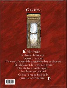 Le temps n'existe que par sa mesure. Sans instrument pour le compter, il devient une notion abstraite. C'est pourquoi un sablier, qui devrait n'être que le reflet du temps, est en fait le temps lui-même... Mais qu'arriverait-il si ce sablier définissait aussi l'origine et l'arrivée du temps ?... Ombres est une série qui propose au lecteur des histoires fantastiques en deux tomes. Après Le Solitaire qui avait fait surgir un vaisseau fantôme dans la baie de Saint-Malo, nous découvrons aujourd'hui le deuxième volet du Sablier, un conte terrifiant qui se déroule à Paris. En volant chez un antiquaire le sablier maudit, un couple bascule dans le cauchemar et lance à ses trousses les tueurs d'une secte venue du passé... Sur les traces d'Edgar P?, Dufaux et Rollin échafaudent un suspense fantastique à faire frémir les plus cartésiens d'entre nous...