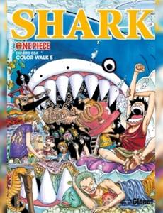 Suivant le chemin tracé par les précédents volumes, Eiichiro Oda nous plonge dans des illustrations couleurs grand format magnifiques, chacune ayant accompagné, d’une manière ou d’une autre, la publication de One Piece. Shark regroupe les illustrations des arcs d’Enies Lobby et Thriller Bark, et propose en outre un gigantesque dépliant réalisé pour les 10 ans de One Piece au Japon. Il propose également une rencontre croisée avec Taiyo Matsumoto (Amer Béton), une véritable légende vivante au Japon !