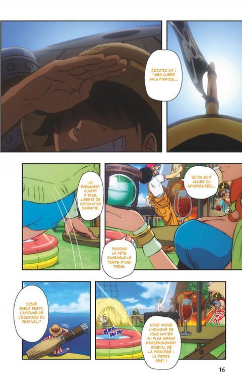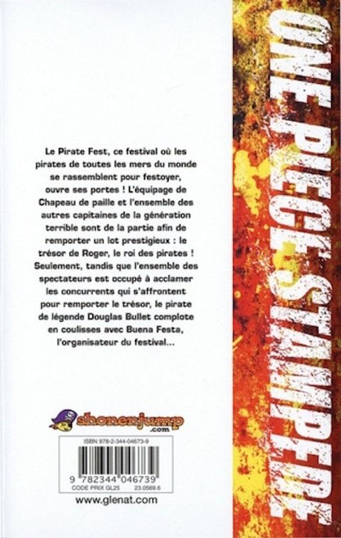 L'anime comics du film culteL'équipage de Chapeau de pailleest invité à la Pirate Fest, un festival hors du commun où des pirates du monde entier s'affrontent pour retrouver le butin caché du roi des pirates, Gold Roger. Mais cette chasse au trésor organisée par le fourbe Buena Festa est brutalement interrompue par Douglas Bullet, un ancien membre de l'équipage de Roger surnommé « l'Héritier du Démon »...Ce long métrage spectaculaire célèbre les vingt ans de l'anime et offre des combats haletants, des retrouvailles ainsi que des alliances inattendues! Rejoignez l'aventure grâce à l'anime comicsOne Piece Stampedeen deux volumes!