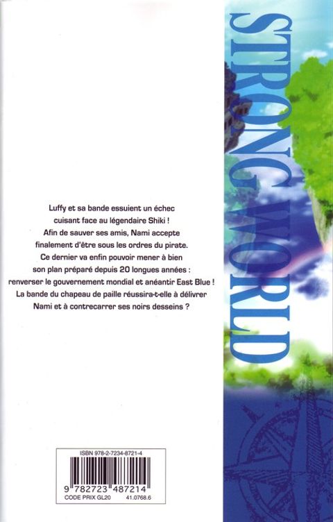 Luffy et son équipage naviguent sur les mers à la recherche du légendaire trésor appelé “One Piece” et doivent faire face à de nombreux pirates. Le plus dangereux d’entre eux, Shiki le Lion d’or, passé pour mort, réapparaît vingt ans après, déterminé à prendre sa revanche sur le monde entier. Pour mettre en œuvre son plan machiavélique, il kidnappe Nami, la navigatrice de Luffy, et la retient prisonnière sur Strong World, l’île sauvage qu’il a créée dans le ciel. Luffy et ses compagnons vont devoir se battre contre une nature toute puissante et des animaux gigantesques pour délivrer Nami.