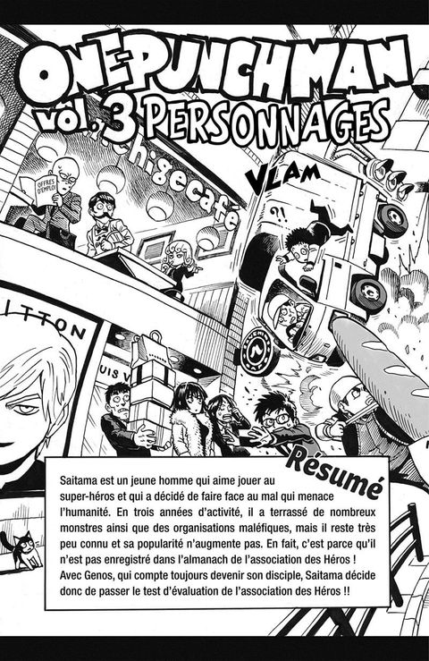 La vie de super-héros va enfin commencer pour Saitama qui se présente avec Genos, au test d'évaluation des héros ! Lors de l'épreuve physique, Saitama montre son incroyable puissance et obtient d'excellents résultats. Malgré ça, il n'est placé qu'en classe C !! S'il veut monter dans le classement, il va devoir se mettre sérieusement au boulot! bref, ce n'est pas facile d'être un héros et les galères ne font que commencer !!