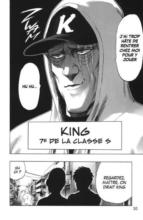 On continue à découvrir les héros de classe S avec King, surnommé "L'Homme le plus fort du monde". Toutefois, King porte un lourd secret, en lien avec Saitama. Ce tome est le début d'une nouvelle intrigue qui se met en place, prometteuse sur le plan scénaristique.