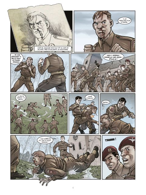 1944, Bulford Camp, Angleterre. Adrien Bellefontaine, engagé canadien et artiste à ses heures, croque sur le papier ses camarades soldats lors de son entraînement pour l'opération Overlord. Car au coeur de la campagne anglaise est reconstituée fidèlement la batterie de Merville, un objectif stratégique capital. Cette pièce d'artillerie allemande menaçant Sword Beach, doit à tout prix être démantelée pour faciliter le débarquement des forces alliées sur les plages normandes. L'unité de parachutistes d'Adrien doit protéger le flanc gauche du bataillon chargé de prendre la batterie. Ce n'était pas sa mission initiale, et pourtant le jeune Canadien va participer malgré lui à l'attaque...2014 commémore le 70ème anniversaire du débarquement en Normandie. À cette occasion, les éditions Glénat vous proposent de revenir sur le D-Day à travers trois albums indépendants, centrés chacun sur un objectif stratégique précis de cette opération militaire historique.