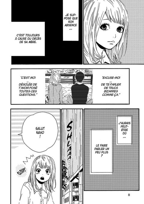 Naho ne peut se résoudre à imaginer un futur dans lequel Kakeru ne serait plus de ce monde. Aussi, la jeune lycéenne réussit à prendre sur elle, et à suivre les recommandations inscrites sur la lettre qu'elle a reçue. Pourtant, un jour, elle réalise que les évènements commencent déjà à différer de ceux qui lui avait été prédit. Et si l'avenir était en train de changer ?