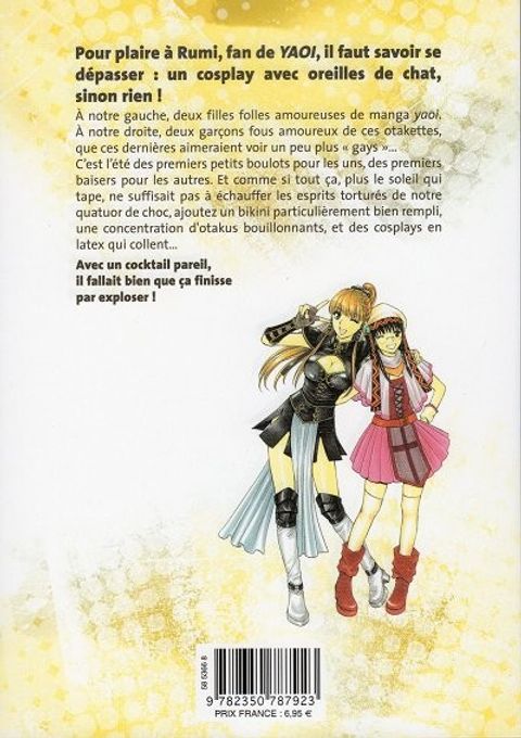 Pour plaire à Rumi, fan de YAOI, il faut savoir se dépasser : un cosplay avec oreilles de chat, sinon rien ! À notre gauche, deux filles folles amoureuses de manga yaoi. À notre droite, deux garçons fous amoureux de ces otakettes, que ces dernières aimeraient voir un peu plus " gays "... C'est l'été des premiers petits boulots pour les uns, des premiers baisers pour les autres. Et comme si tout ça, plus le soleil qui tape, ne suffisait pas à échauffer les esprits torturés de notre quatuor de choc, ajoutez un bikini particulièrement bien rempli, une concentration d'otakus bouillonnants, et des cosplays en latex qui collent... Avec un cocktail pareil, il fallait bien que ça finisse par exploser!