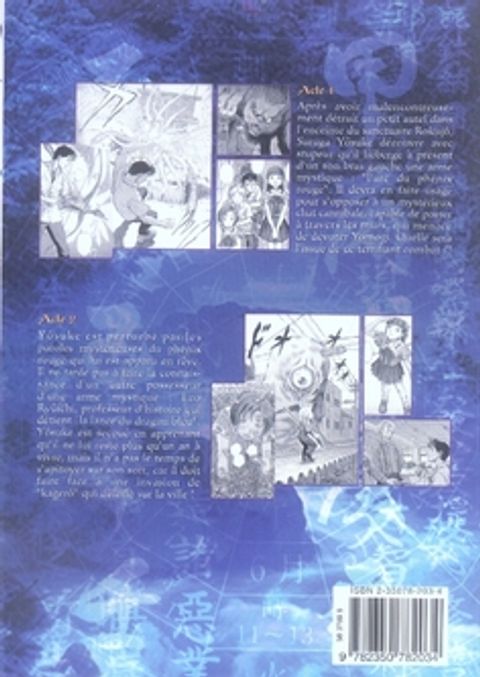 après avoir malencontreusement détruit un petit autel dans l'enceinte du sanctuaire rokujô, suruga yôsuke découvre avec stupeur qu'il héberge à présent d'un son bras gauche une arme mystique : ""l'arc du phénix rouge"". il devra en faire usage pour s'opposer à un mystérieux chat cannibale, capable de passer à travers les murs, qui menace de dévorer yomogi. quelle sera l'issue de ce terrifiant combat ? ! yôsuke est perturbé par les paroles mystérieuses du phénix rouge qui lui est apparu en rêve. il ne tarde pas à faire la connaissance d'un autre possesseur d'une arme mystique : ezo ryûichi, professeur d'histoire qui détient ""la lance du dragon bleu"". yôsuke est secoué en apprenant qu'il ne lui reste plus qu'un an à vivre, mais il n'a pas le temps de s'apitoyer sur son sort, car il doit faire face à une invasion de ""kagerô"" qui déferle sur la ville !.
