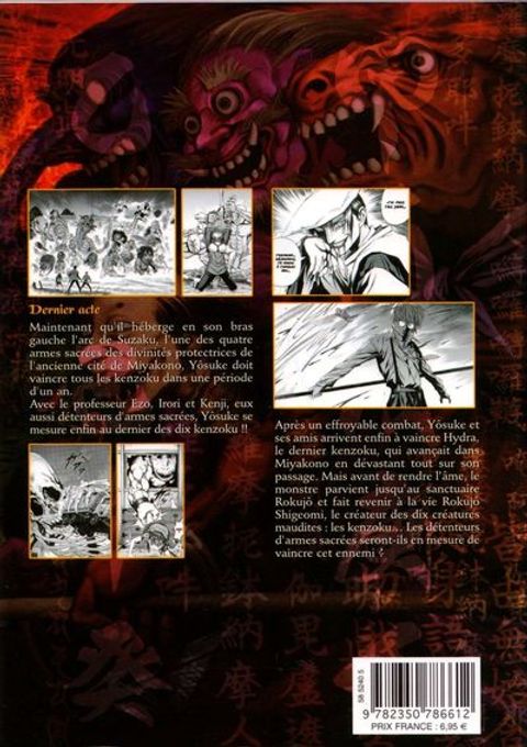Le kenzoku géant Hydra a refait surface à la périphérie de Miyakono. Après un combat acharné, les détenteurs d'armes sacrées, épaulés par l'unité antikenzoku et la police, arrivent tant bien que mal à l'éliminer en le décapitant. Mais la tête du monstre atterrit dans l'enceinte du sanctuaire Rokujô et ramène à la vie Rokujô Shigeomi et ses vassaux qui attaquent aussitôt la ville ! Face à cette situation désespérée, les détenteurs d'armes sacrées pourront-ils l'emporter face à ces ""cent démons"" ? Et qu'adviendra-t-il de Yôsuke pour qui l'ultimatum approche inexorablement ?