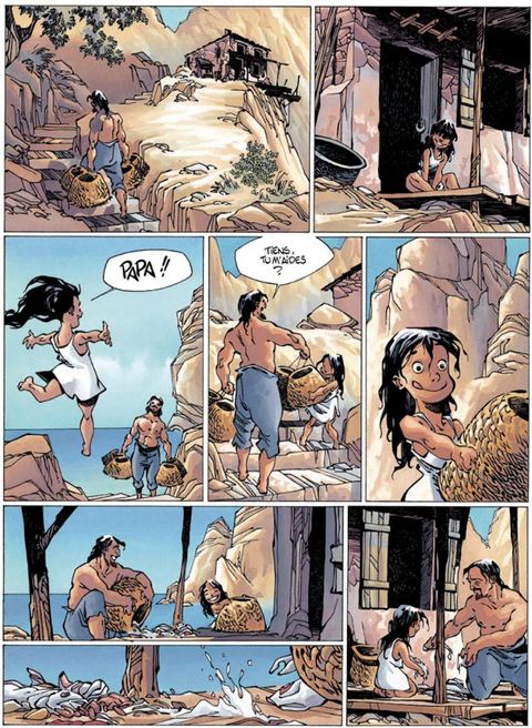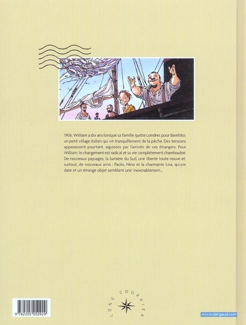 1906, Barellito. Une famille venue de Londres emménage au bord de la mer, dans un petit village d'Italie. Le père veut se consacrer à la pêche. Le fils, William, se réjouit déjà à l'idée de courir en pleine nature, loin de la grisaille londonienne. Et puis, il y a Lisa, la petite voisine aux cheveux noirs qui l'a si gentiment accueilli. Mais les habitants de Barellito ne cachent pas leur hostilité aux nouveaux arrivants. Ils n'apprécient pas que des " étrangers " s'installent chez eux. Quant à Lisa, elle semble douée d'étranges pouvoirs... Au premier regard, le cadre enchanteur de Barellito semble destiné à préserver ses habitants du malheur. La mer, le ciel bleu, le soleil, la nature. Mais il ne faut pas se fier aux apparences. Derrière ce décor de carte postale, la vie peut prendre les couleurs sombres du drame et de la haine... Le récit traduit à merveille le mouvement de balancier qui anime les personnages, ballottés entre leurs aspirations au bonheur et le climat tendu auxquels ils sont vite confrontés. Et le trait d'Olivier Pont, tout en rondeurs joyeuses, est rehaussé par les couleurs parfaites de Chagnaud, qui traduisent avec sensibilité et finesse l'éclatante lumière de la Méditerranée.