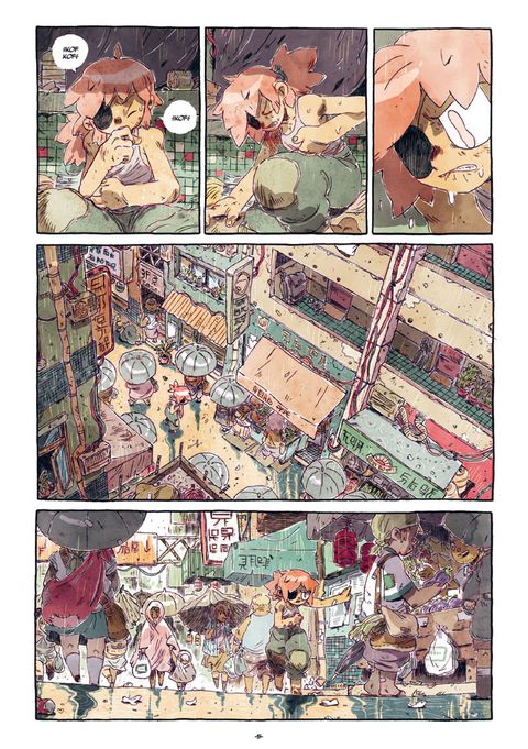 Fantastique BD. Tout d'abord des graphismes fantastiques. Tout est lisible, bien découpé et bourré de détails. La direction artistique est super on oscille entre ville asiatique au parfum multiculturel et la jungle type asiatique aussi. La colorisation a l'aquarelle est magnifique. Les couleurs sont chatoyantes. L'histoire est touchante, simple et (...) Voir le commentaire