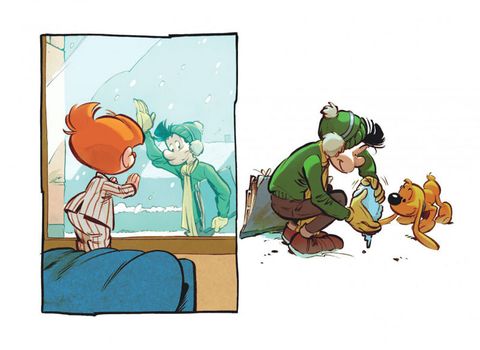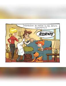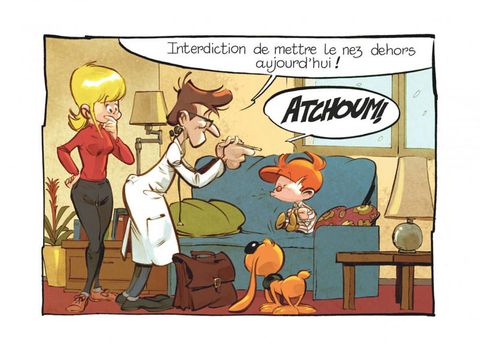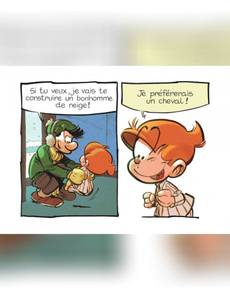 P'tit Boule est un petit garçon de 5 ans. Avec son cocker, Bill, il vit de grandes aventures et de grands moments de tendresse. Et ses parents sont toujours prêts à partager ces petits bonheurs !  Tome 5 « Cheval blanc » Atchoum ! P'tit Boule est tout enrhumé. Ce n'est pas drôle de devoir rester enfermé à la maison alors qu'il neige dehors ! Heureusement, P'tit Boule peut compter sur son papa qui va trouver une solution pour qu'il puisse quand même jouer dans la neige.