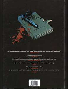 SUSPENSE, ACTION, COMPLOT : TOUS LES INGRÉDIENTS D'UN THRILLER MOUVEMENTÉ D'ENVERGURE INTERNATIONALE ! Dans le Tome 2 de CIA, l'engrenage de l'attentat du tome 1 prend des proportions internationales encore plus inquiétantes et un scénariste de plus tombera sous les balles... Dans le rapport NIC 2020, la CIA identifi ait deux scénarios catastrophe majeurs pour le futur (horizon 2020). Un de ces scénarios était « Le nouveau Califat » : Un basculement en domino des gouvernements du Proche et Moyen-Orient qui bouleverserait la donne mondiale actuelle. C'est peut-être l'actualité... Le second a été baptisé « le Cycle de la peur » et il montre comment une banalisation de l'hyper terrorisme pourrait faire basculer le monde libre dans un univers «Orwelien «. Un dernier scénario n'a jamais été imaginé. Que se passerait-il si la plus grande organisation de renseignements s'écroulait ? C'est la rencontre de ces trois scénarios catastrophe que vous propose le tome 2 de la série CIA.