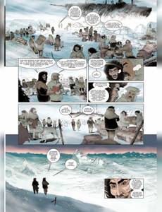 Cette histoire parle d'un temps révolu, un temps où les hommes ne s'étaient pas hissés au sommet du règne animal et où les légendes suffi saient à expliquer les nombreux mystères de ce monde... En ces temps reculés, Inlandsis, le territoire des glaces, s'étendait au delà des mers connues. Les dieux l'avaient édifi é pour se prémunir de la soif de conquête des Deux-Bras-Deux-Jambes. Là-bas, les animaux régnaient en maîtres. Les dieux leur avaient accordés le feu de l'intelligence et le souffl e du langage. Ils en avaient fait les gardiens de leur royaume. Ayant ainsi oeuvré, les dieux se retirèrent dans leur forteresse, aux confi ns d'Inlandsis. Ils pouvaient se reposer, ils étaient protégés. Mais ces mesures ne suffi rent pas à décourager les Deux-Bras-Deux-Jambes qui s'aventurèrent malgré tout dans ces contrées hostiles. Et rien ne fut jamais pareil.