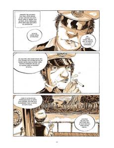Entre voyage et critique politique, un livre sombre, terrible qui vous piquera l'âme ! « J'irai là. » rêve le jeune Charles Marlow en pointant son doigt vers l'Afrique, loin de se douter qu'il s'y rendrait à l'âge de vingt ans. Missionné par une compagnie de commerce colonial pour retrouver un certain Kurtz, Marlow s'embarque, plein d'illusions, dans ce voyage au Congo : une descente aux enfers... Construit tel un miroir en trois grandes parties - Angleterre/Belgique (l'homme soit disant civilisé) ; Afrique (l'homme primitif ) ; Belgique/Angleterre (l'homme tel qu'il est, un mélange des deux) - ce récit est, tout à la fois, une immersion dans l'horreur de la colonisation et une plongée dans l'âme humaine. Comme pour mieux le retranscrire, le dessin évolue : un style ciselé, élégant, lumineux laisse place à un trait déformé, plus rugueux, noir... Le coeur des ténèbres et le coeur de ce roman tiennent là : une traversée de notre propre condition humaine. Nous avons tous en nous le « J'irai là. » de Marlow, un rêve à poursuivre comme un risque à courir. C'est la question du livre, la question posée aux lecteurs : irez-vous là, dans ce rêve africain, qui à tout moment, menace de devenir cauchemar ?...