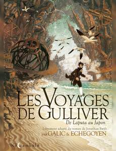 Après une attaque de pirates, Lemuel Gulliver cumule les découvertes : l'île volante de Laputa, Balnibarbi, l'Académie de Lagado, Maldonada, l'île de Glubbdubdrib, le royaume de Luggnagg puis le Japon, avant de rejoindre l'Angleterre. Conte philosophique, pamphlet sociétal et politique ou récit fantastique... cette adaptation, de toute beauté, mêle brillamment humour et satire.